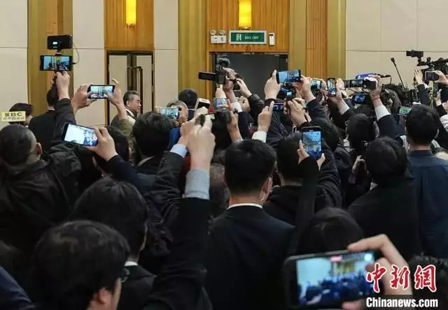 3月7日,十四届全国人大二次会议在北京举行记者会,中共中央政治局委员、外交部长王毅就“中国外交政策和对外关系”相关问题回答中外记者提问。图为媒体在记者会后追访王毅。 中新社记者 崔楠 摄