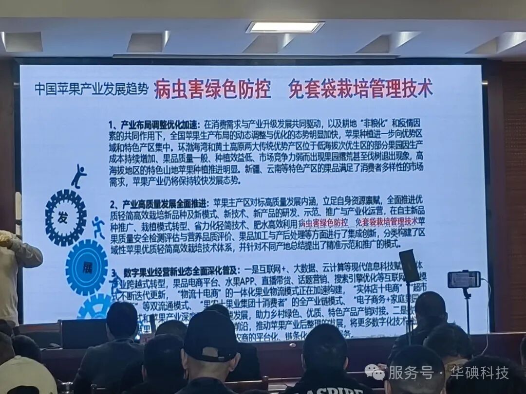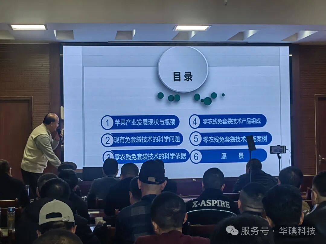 授课专家有省农科院苹果首席专家、当地知名专家和华碘科技公司专家,系统总结了免套袋的成功经验,着重强调成功细节,提出新方案新措施。